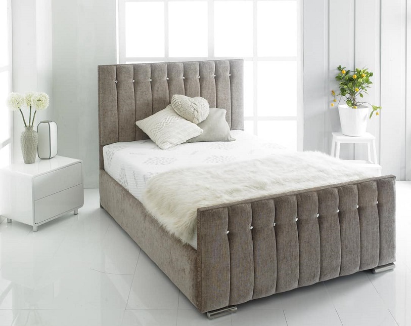 The impressive Charlotte upholstered bed frame contains all the durability and quality of a luxurious bedstead, equipped with a platform style base. With its sleek and stylish diamante studded headboard and matching foot end it really brings a touch of class and sophistication to this bedstead. Available in a large choice of elegant colours and incredible fabrics, the Charlotte will bring a fresh new style to your bedroom.